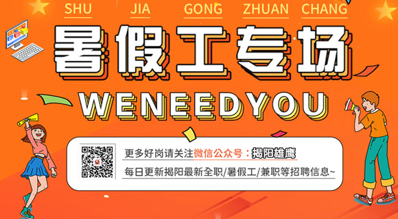 您的位置:網(wǎng)站首頁 > 職場資訊 > 招聘會(huì)信息 > 粵東招聘會(huì) > 2021年暑假工專場會(huì)來了!