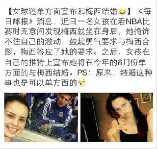 這句話源自一則新聞標題,“女球迷單方面宣布和梅西結(jié)婚”。網(wǎng)友們發(fā)現(xiàn)原來結(jié)婚也是可以單方面宣布的,于是“我單方面宣布”迅速風(fēng)靡網(wǎng)路,并被各路粉絲引用出現(xiàn)了“我單方面宣布和xx結(jié)婚”。